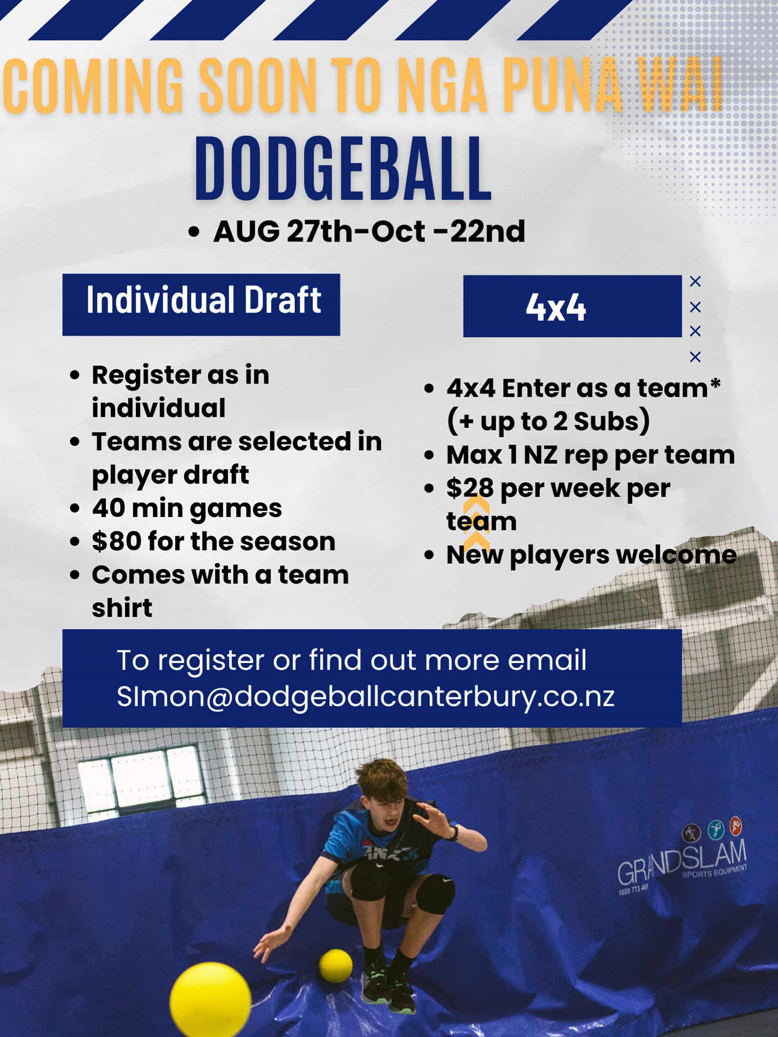 We are introducing something new this season! Get you and 3-4 other mates to come along to Nga Puna Wai every Wednesday evening (6.20-7.30). $28 per team per week. Fully social just need to know how to throw a ball and move!